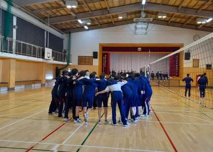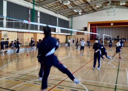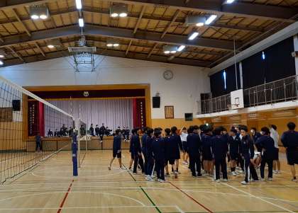 3年生 体育 バレーボール部VS男子 これから始まります。(副校長)
