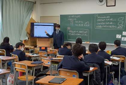 2年生 数学 平行四辺形の性質について勉強しています。 平行四辺形はいろんな特徴がありますね。(副校長)