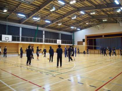 保健体育の授業は、体育分野の実技で球技でした。男子はグランドでサッカー、女子は体育館でバレーボールをしていました。声かけあって楽しくゲームをしていました。