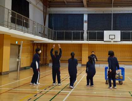 チームワーク 公開日 2024/01/23 更新日 2024/01/23 できごと 3年生 体育 バレーボール チームごとに、ポイントを絞った練習をしています。 各チームのコーチは、バレーボール部員ですね。(副校長)