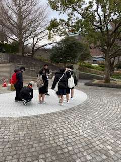 山下公園に到着。先生より横浜調査隊に任命され班ごとに石碑を見つけ、問題に答えてから、港の見える公園へ。