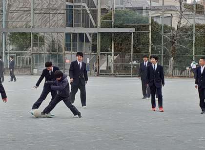 でも、元気にサッカーや、バレーボールなどで遊んでいます。(副校長)