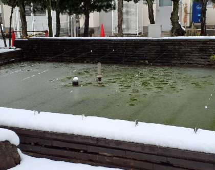 しばらく校庭は使えそうにありません。どうか皆さん我慢してくださいね。池の鯉さん、亀さんどうしていますか?心配です。春が待たれます。