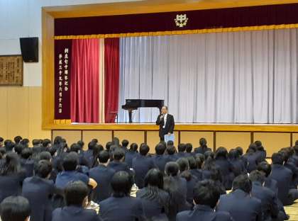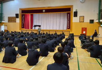 体育館に集まり、警察の方からお話をいただきました。(副校長)