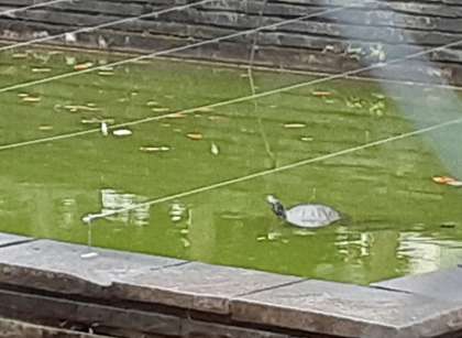 池の亀さんたちが久しぶりに姿を見せました。