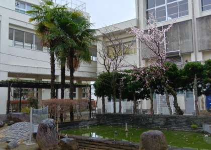 中庭は、季節の移ろいを感じられる憩いの場ですね。(副校長)