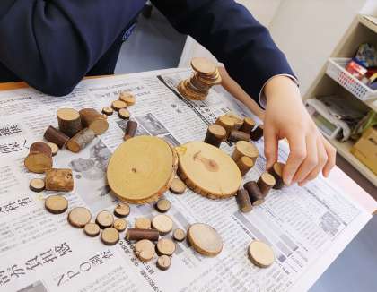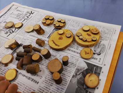 教室が桜、桂、小楢などの木の香りに包まれています。