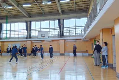 多くの生徒が体育館に集まっています。