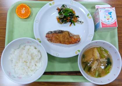 みそ汁の具はじゃがいも、玉ねぎ、小松菜、えのき茸、油揚げです。最近ちょっとみそ汁が濃いめだなと思っていましたが、今日はちょうど良かったです。