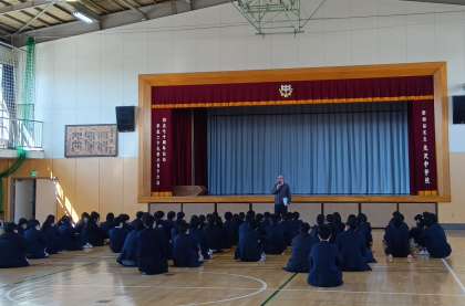 途中、緊急地震速報が鳴ったと時には体育館の中央に集まって頭を守る姿勢を取りました。
