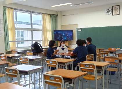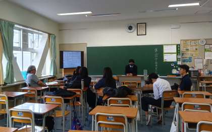 生徒総会に向けて、各クラスから出された質問に対する回答を話し合っています。2.3年生の成長した姿が頼もしいです。より良い学校生活が送れるよう、各委員会の活動に期待していますよ。(副校長)