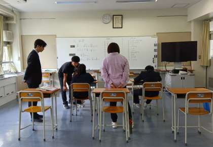 おおぐま学級 国語 漢字テストを行っています。 今日から大学生が介護等体験で実習に来ています。(副校長)
