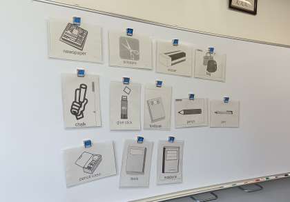 おおぐま学級 英語 文房具の名前を覚えます。 1番目にあがると大きいシールがもらえます。(副校長)