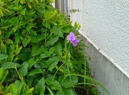職員室前のムラサキツユクサが可憐な花を咲かせています。四季折々の花々が心を癒やしてくれますね。(副校長)