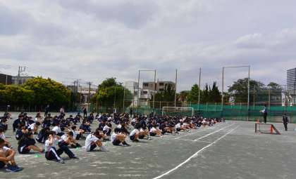 暑いので、できればマスクを外すように伝えています。(副校長)