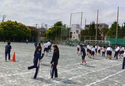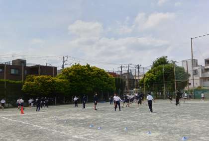 全員リレーのポイントは、バトンパス 前後の人のタイミングを合わせることが大切ですね。(副校長)