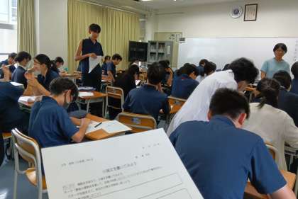 3年生 教科日本語 運動会を通して自分が成長したことについて小論文の形式で表します。 まずは、構想を練ります。(副校長)