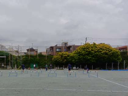 今日は低めのハードルでハードル間の歩数や左右どちらの足を上げるのかを決めています。
