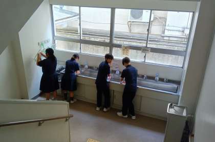 ありがとう 公開日 2024/06/12 更新日 2024/06/12 できごと 美化委員 校庭避難のあと、 生徒の皆さんが上履きの底を拭いたあとの雑巾を洗っています。 いつもありがとうございます。(副校長)