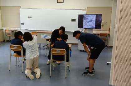 おおぐま学級 理科 電池を作っています。 副校長が教室に入っても、気にせず集中していますね。(副校長)