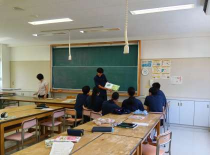 絵本の読み聞かせを楽しんでいますね。(副校長)