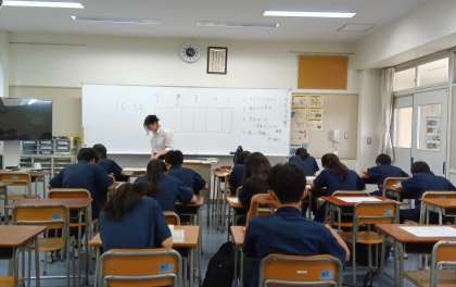 放課後 漢検対策学習会を行っています。 6時間勉強したあとでも、とてもよく集中していますね。(副校長)