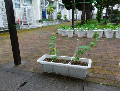 さて、写真は下北沢小学校からいただいたゴーヤです。ツルがやっとネットに届きました。成長が楽しみです。(副校長)
