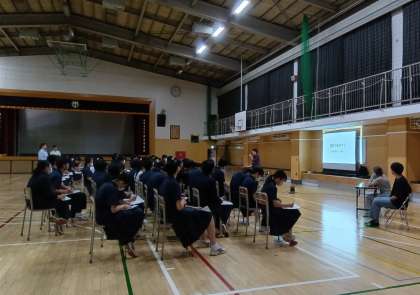 先生の話を集中して聞く