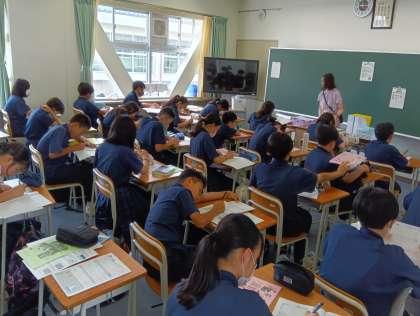 一行日記や、休み中のしおりを記入しています。じっくりと取り組んでいますね。(副校長)