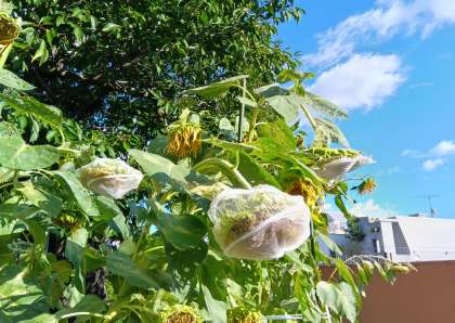 今朝、ホームページでひまわりの種が鳥に食べられたと掲載したところ、早速、学校支援コーディネーターの方が対策してくださいました。これで安心ですね。ありがとうございます。