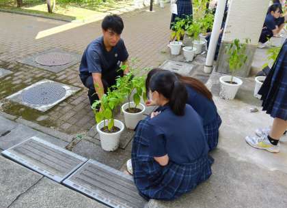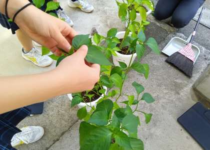 日当たりが大事なので、鉢を池の周りに移動しました。