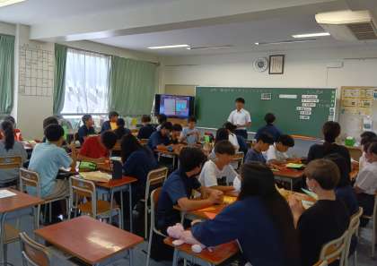 お互いの考えを参考に、自分の目標を考えます。(副校長)
