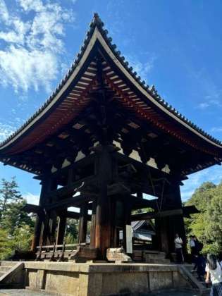 国宝鐘楼、梵鐘では、ガイドさんのユニークな小話で一層、学びが深まります。