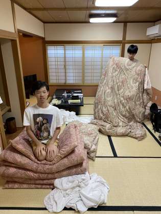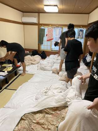 起床時刻になりました。よく眠れましたか。お布団を畳んで、身支度をしてくださいね。今日も1日頑張りましょう。