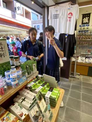 抹茶のお土産、いいですね。清水寺、すごく混んでいます。