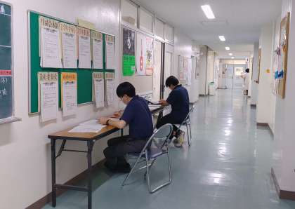 事業所に事前訪問するための電話連絡をしています。この前のマナー講習を生かしていますね。(副校長)