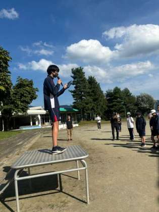 開園式では北沢中学校の3年生が代表として、挨拶をしました。