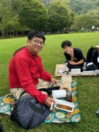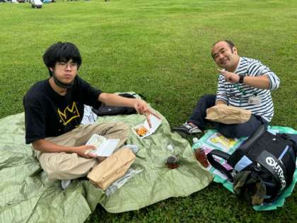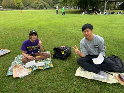 芝生の上で、学園が用意してくれたお弁当を食べました。