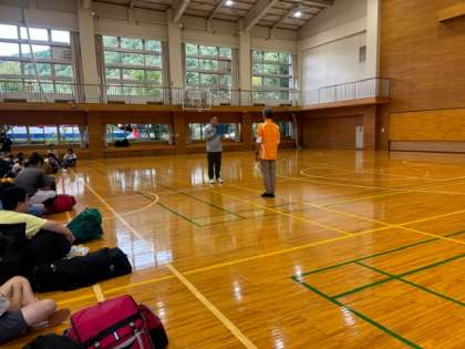 団長である北沢中学校の今田校長先生と林間学園の小林学園長よりお話がありました。代表の生徒が、小林学園長にお礼の言葉を述べました。
