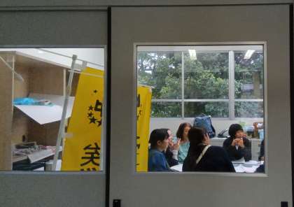 北中ひろばの方と生徒会役員の皆さんが打ち合わせをしています。