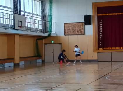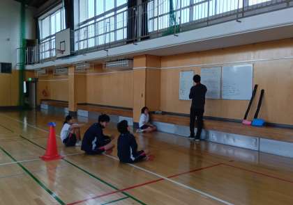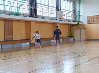 2人一組でコーンに当てながら、順番にボールをリレーします。