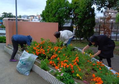 写真は、昨日の1年生の花壇ボランティアの様子です。ひまわりのあった花壇の土づくりをし、マリーゴールドの花壇は、マリーゴールドを残して枯れた花を抜きました。あと一日、マリーゴールドを抜いて土づくりをする必要があります。来週前半の昼休みにお願いしようと考えています。天候次第の活動となりますのでご理解ご協力をお願いいたします。(副校長)