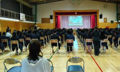 警察署の少年係の方に来校していただき、セーフティ教室が始まりました。 テーマは薬物乱用防止です。