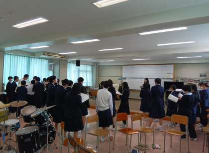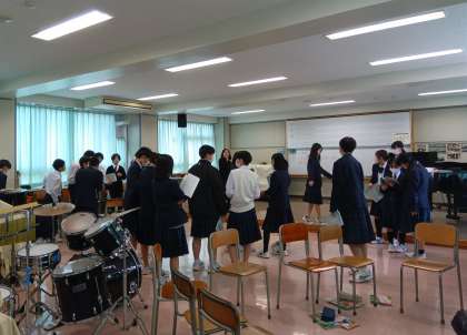 1年生 音楽 合唱 伴奏が始まると途端にみんなの集中が高まり素敵な合唱が始まりました。