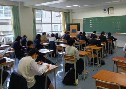 美術のテストが最後です。 あと5分! 時間たりるかな?
