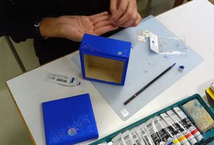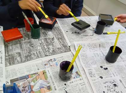漆は5回 公開日 2024/11/18 更新日 2024/11/18 できごと 3年生 美術 印箱 きれいな螺鈿細工ですね。漆は、5回塗ります。 篆刻 デザインが決まった人は印面を彫り始めています。 記念になりますね。(副校長)