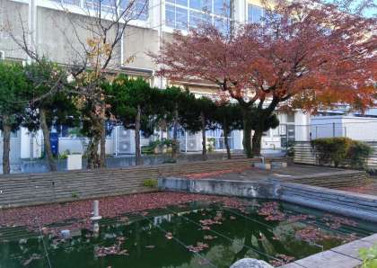 昨日、池にたくさんのもみじの葉が落ちていました。風情がありますね。(副校長)
