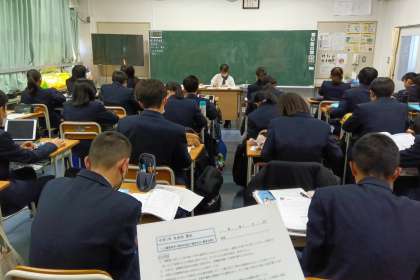 1年生 社会 課題が終わったあとも、自習しています。 時間を大切にしていますね。(副校長)