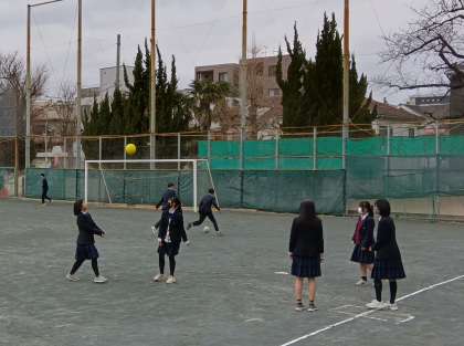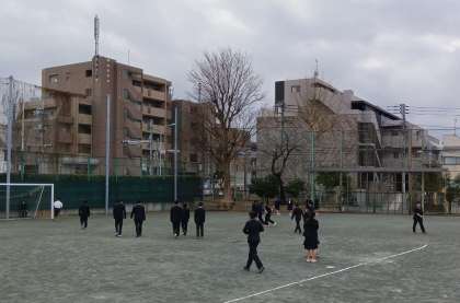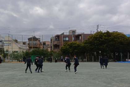校庭では生徒が元気に遊んでいますね。(副校長)