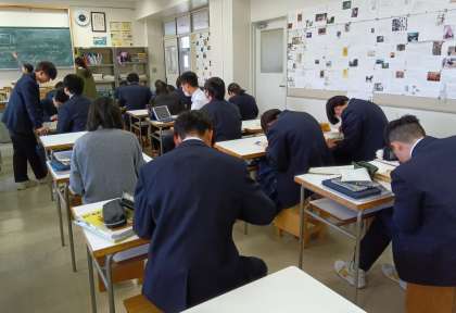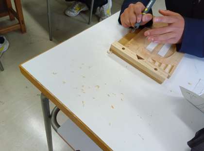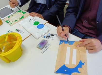 彫り方の技法をデザインの中に生かしていますね。(副校長)